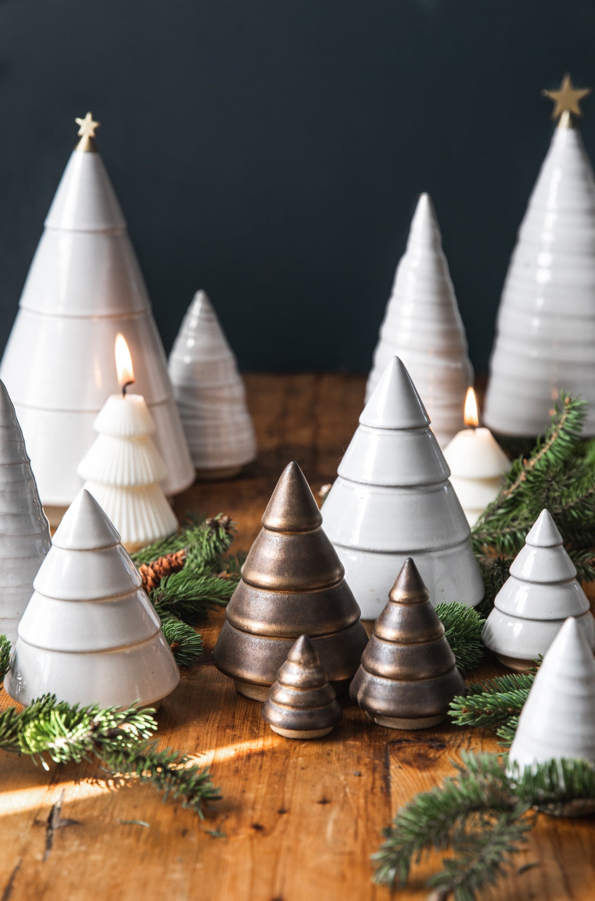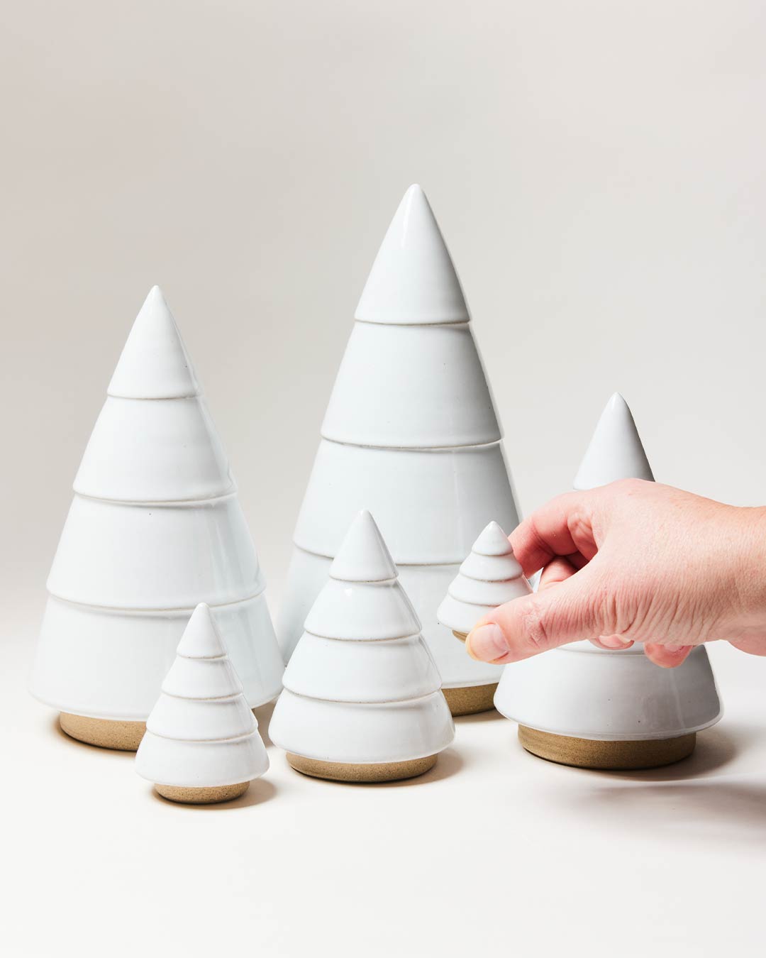 Inspired by the quiet beauty of American forests, our Balsam Woodland Trees bring a touch of nature indoors. Handcrafted in six sizes, each piece adds organic texture and sculptural charm to mantels, shelves, or tabletops. Mix and match to create your own ceramic forest—no two arrangements are ever the same.