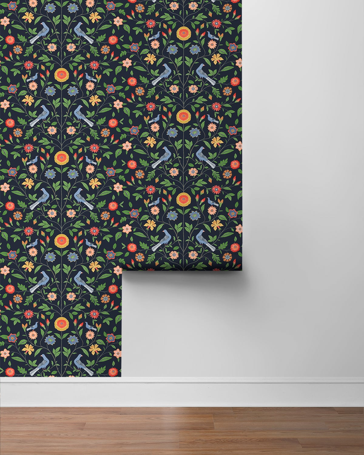 Intricate patterned birds stand watch on a winding floral trail in this whimsical Bird Toile peel and stick wallpaper from NextWall! Printed on smooth vinyl, the self adhesive design is perfect for renters and homeowners looking for an instant, DIY transformation to their interior space. With the same qualities and durability as permanent wallpaper, this product can be applied or easily removed in minutes making it ideal for both long term and temporary use. Proudly printed in the USA!