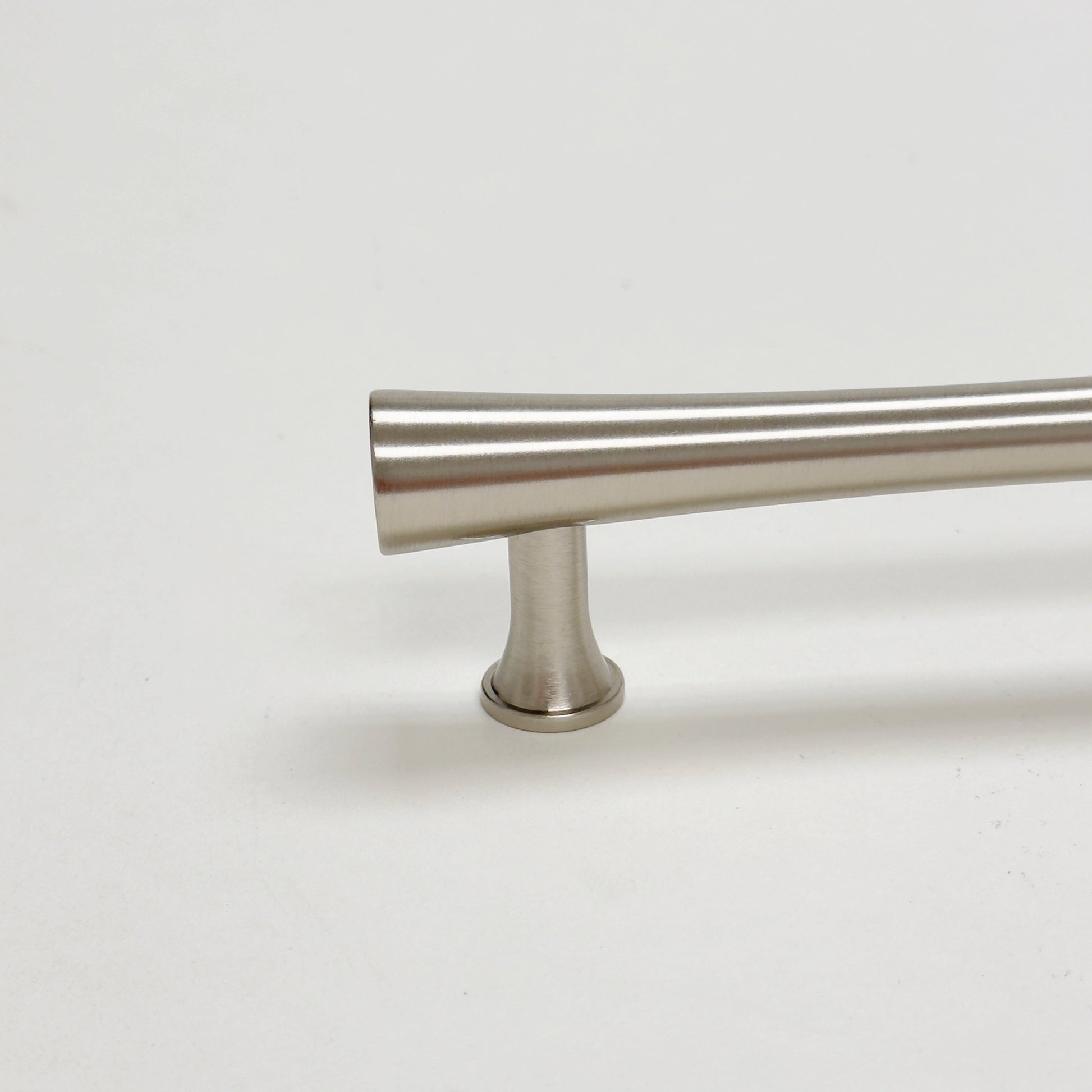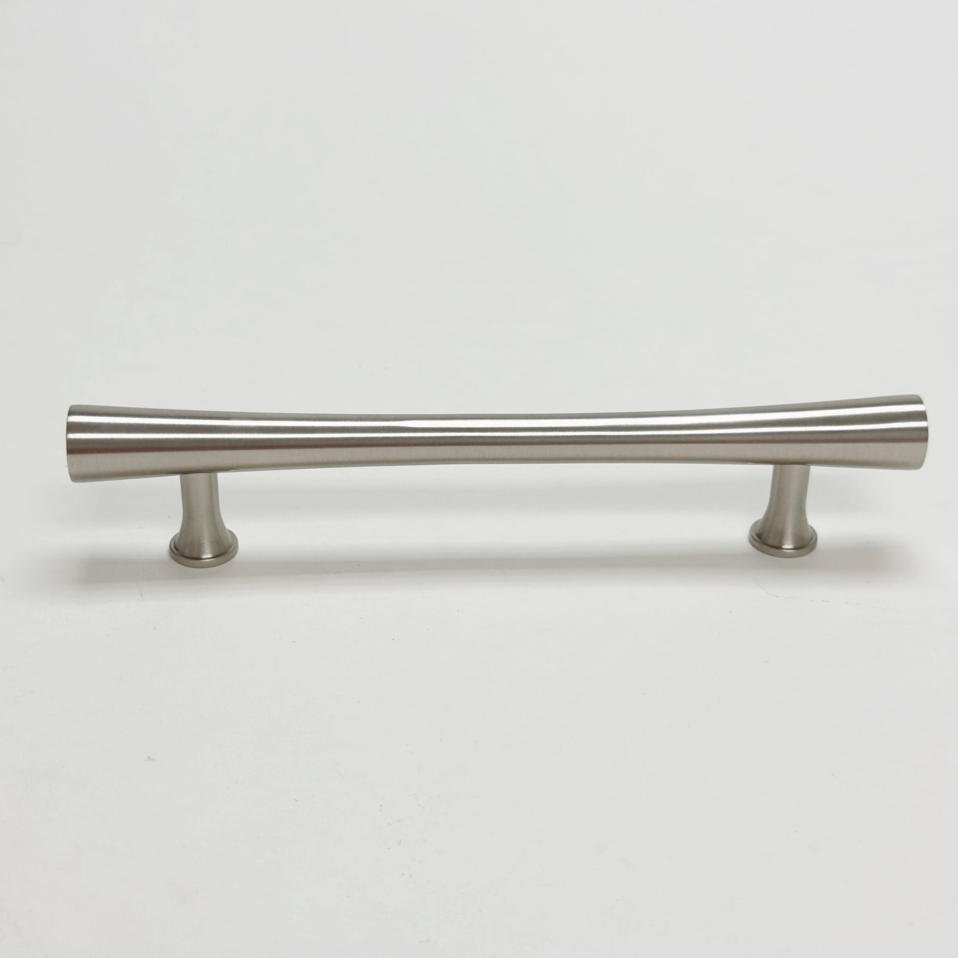 Brushed Nickel Cabinet Hardware "Collin" Mid-Century Modern Drawer Pulls and Knob. This collection is made of solid brass which is lacquered to maintain the finish over time.
