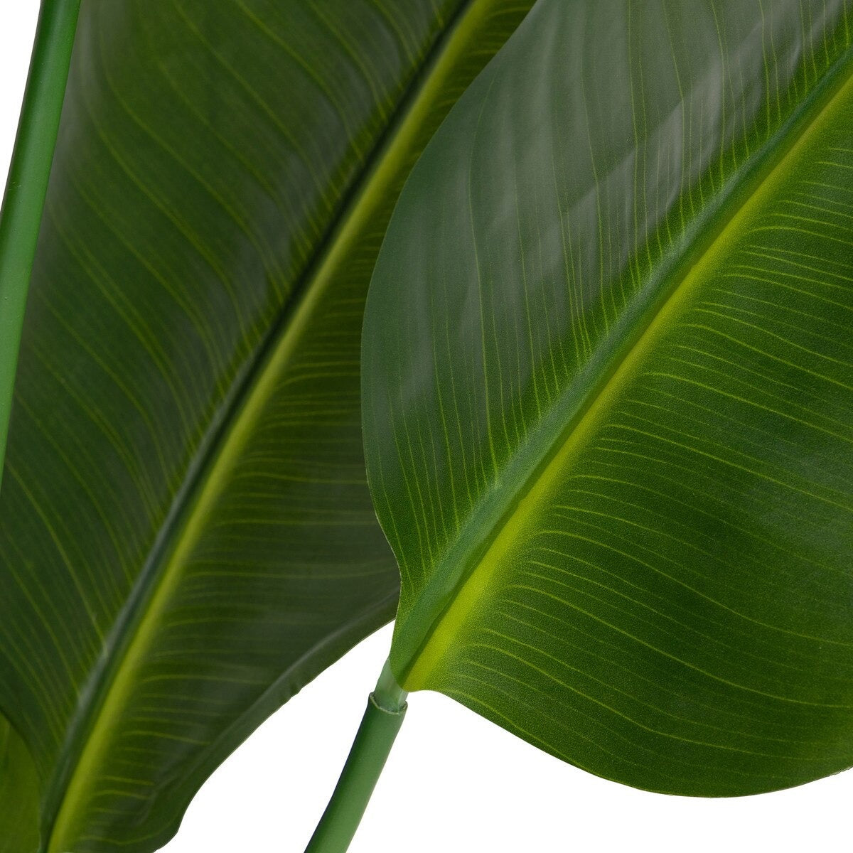 Invite the allure of distant shores into your home with our Faux Traveler Palm Tree. This high qaulity faux tree boasts a realistic trunk that is anchored in a weighted pot. No need for sunlight or water.