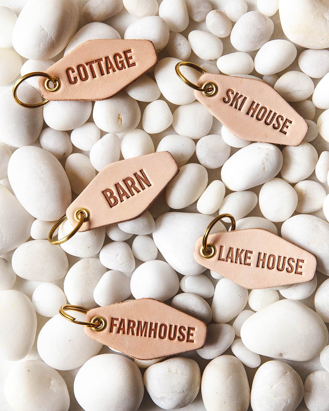 Keep track of your "Happy Place" keys with our all natural leather keychains!