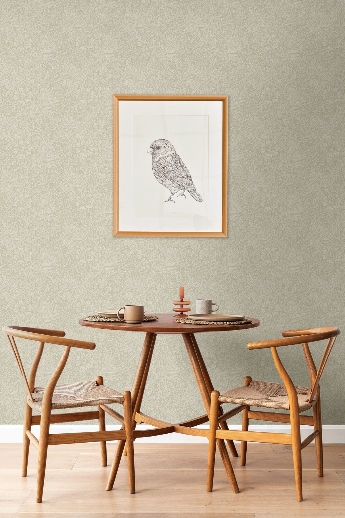 Mimicking classic design elements from the Arts & Crafts era, this Marigold Garden premium peel and stick wallpaper pattern by NextWall will bring a homely warmth to both historic and modern homes. Available in a tonal color palette, the ornate botanicals provide the perfect blend of intricacy and simplicity. Screen printed on smooth vinyl, our self-adhesive designs are perfect for renters and homeowners looking for an instant, DIY transformation to their interior. With the same qualities and durability as permanent wallpaper, our products offer an easy, fresh alternative to decorating with very little commitment. No water, no mess, no sticky residue!