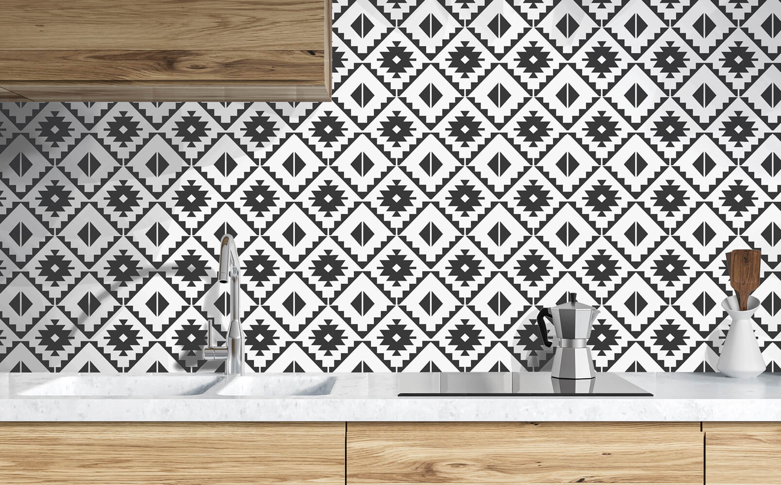 This southwestern bohemian tile peel and stick wallpaper from NextWall offers a graphic style for your wall and furniture surfaces! Printed on smooth vinyl, the self adhesive design is perfect for renters and homeowners looking for an instant, DIY transformation to their interior space. With the same qualities and durability as permanent wallpaper, this product can be applied or easily removed in minutes making it ideal for both long term and temporary use. Proudly printed in the USA!